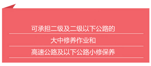 可承擔二級及二級以下公路的大中修養作業和高速公路及以下公路小修保養。